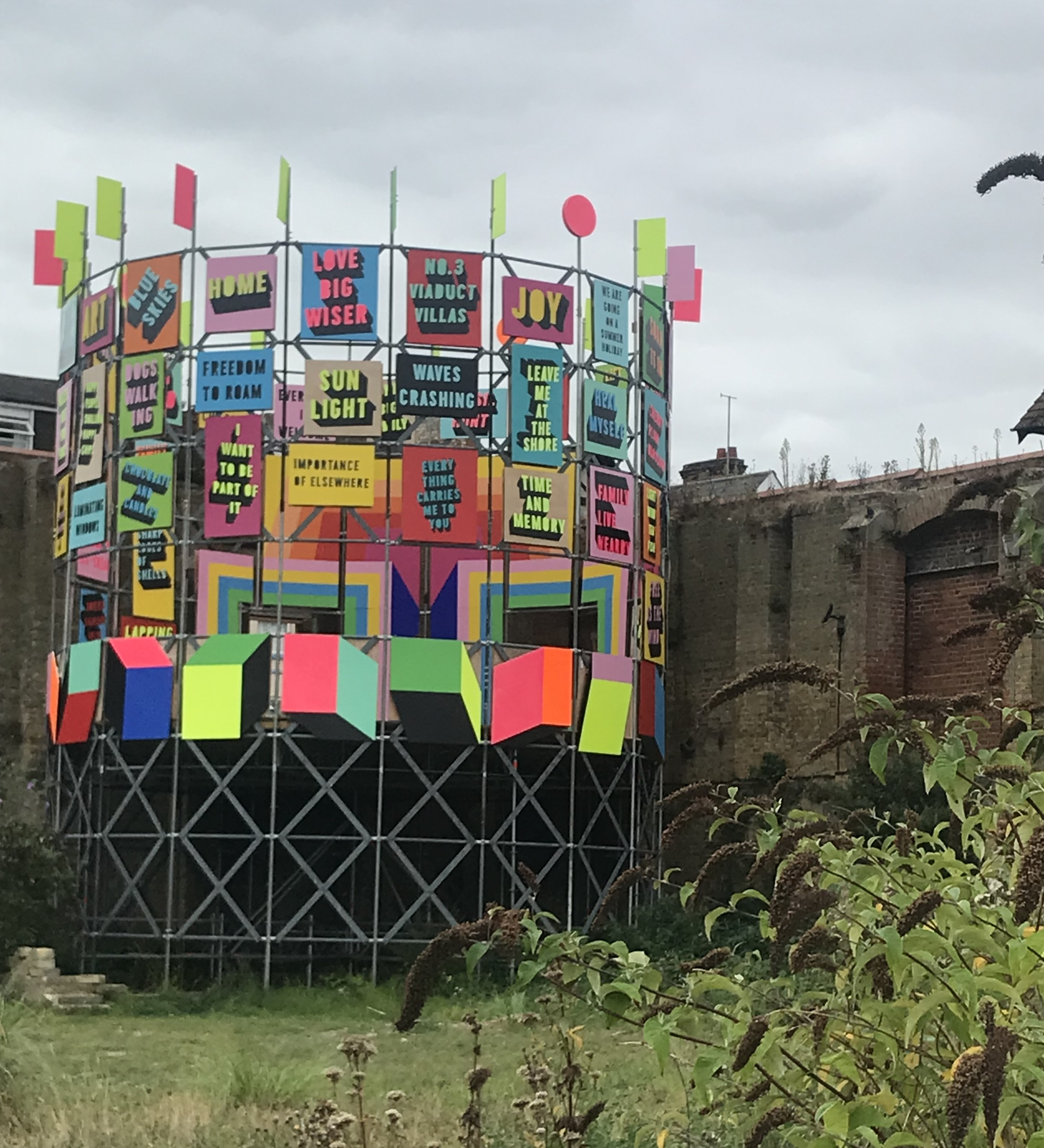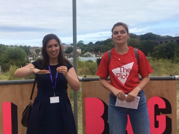 Interpreting for an outdoor art exhibition tour during the Folkestone Triennial arts festival.