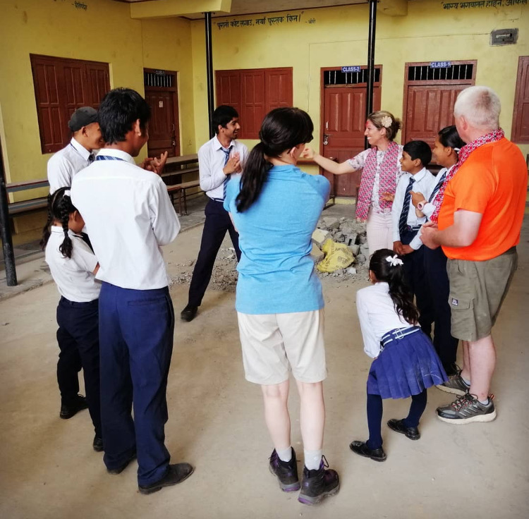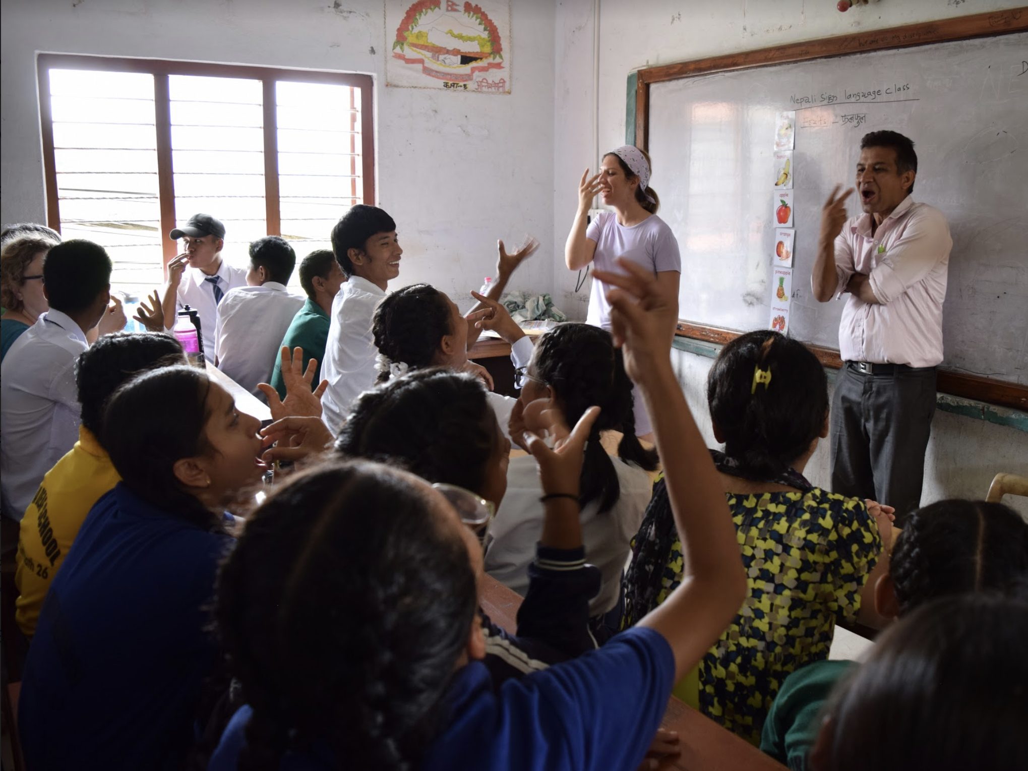 Leading games and activities with the children at a Deaf school in Nepal, using International Sign Language.